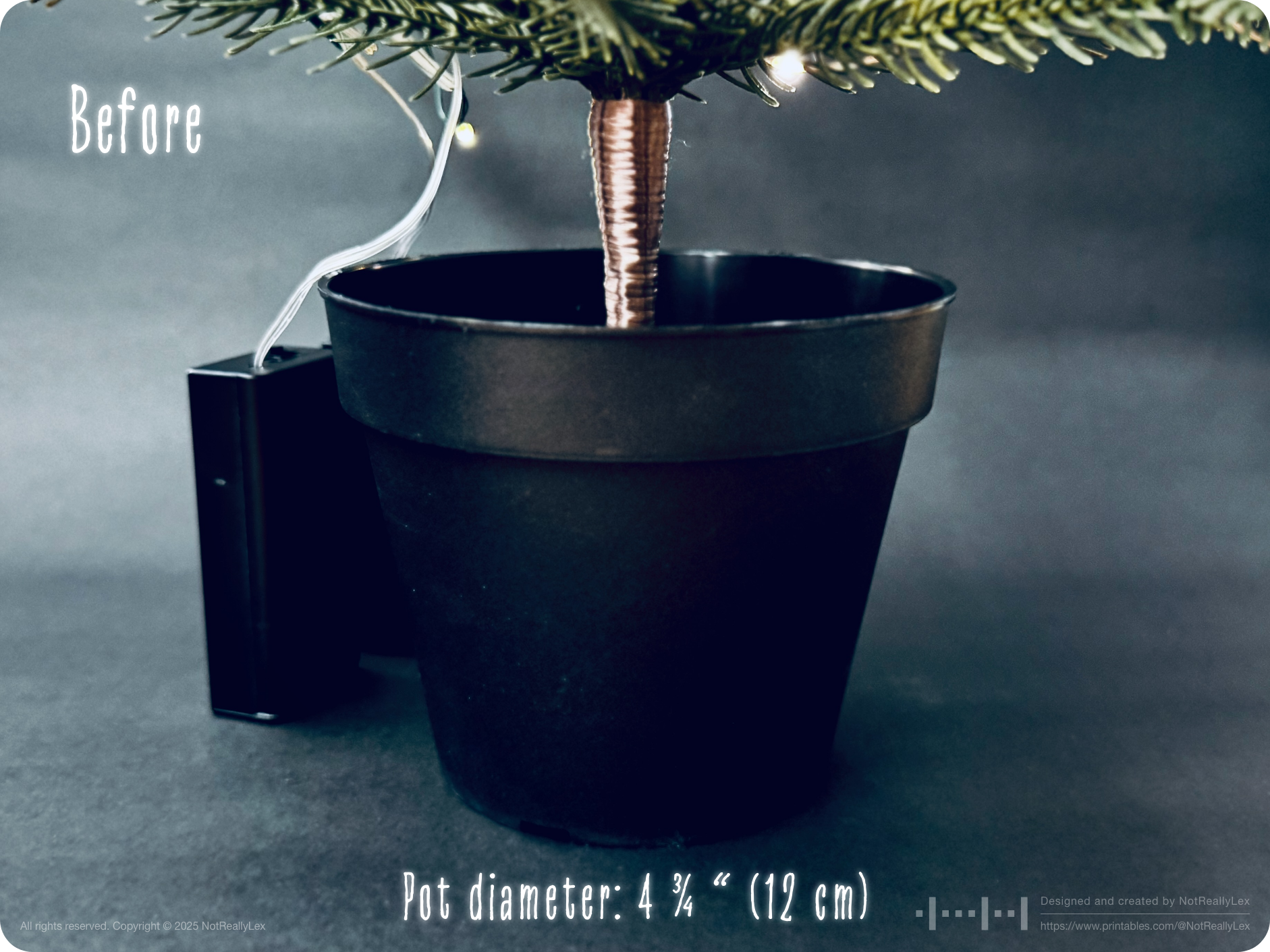 So, I decided enough was enough and designed this minimalist pot specifically for the IKEA VINTERFINT artificial Christmas tree with a 4 ¾" (12 cm) pot. Clean, Scandinavian-inspired, and functional without overshadowing the decorated tree itself.