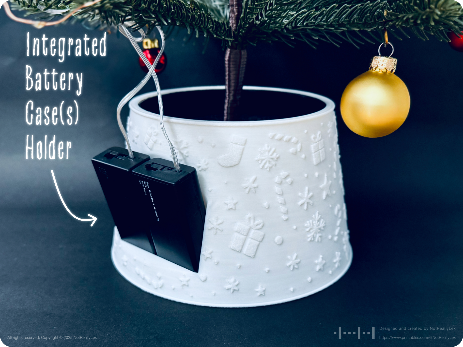 Last year, my IKEA VINTERFINT Christmas tree tipped over and shattered some of my favorite glass ornaments. The culprit? That tiny, unstable default pot and the tree's high center of gravity. Also, those bulky AA battery cases for the lights had nowhere to hide with their short cables, so they just sat behind the pot, constantly tipping over every time I was changing the light patterns or turning the lights on/off.