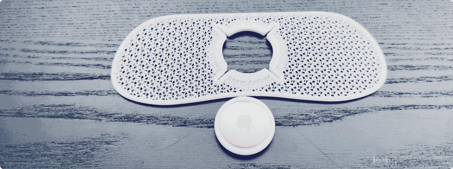 The AirTag slot uses a compliant mechanism: 4 strategic cuts in the holder allow it to flex just enough to snap the AirTag in, then hold it securely in place. The holder stays rigid everywhere else.
