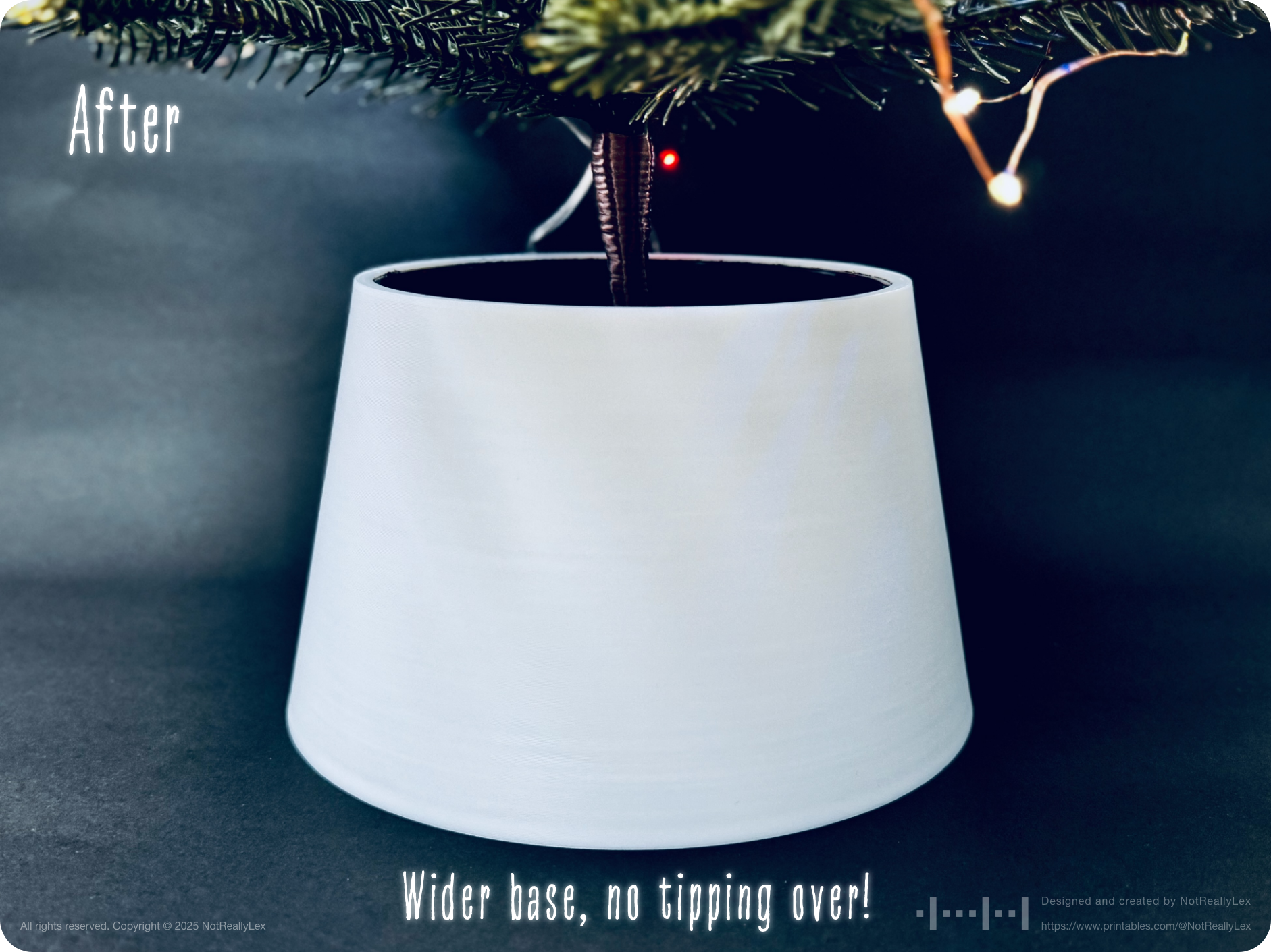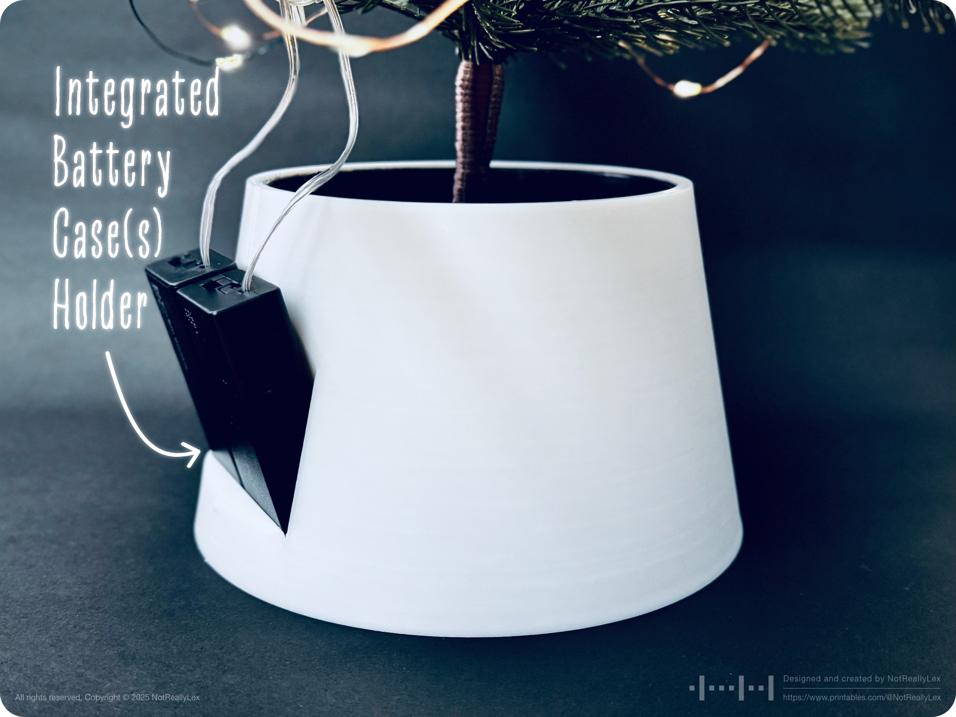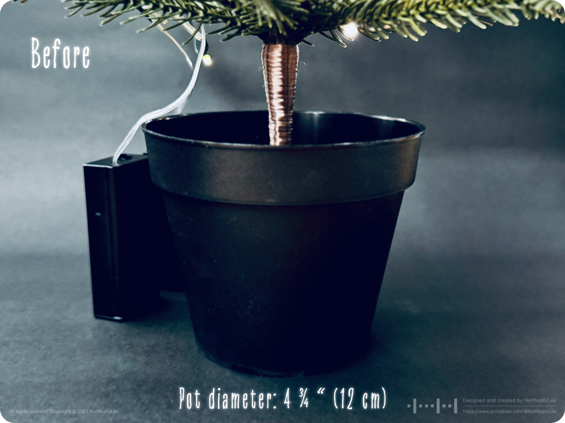 Last year, my IKEA VINTERFINT Christmas tree tipped over and shattered some of my favorite glass ornaments. The culprit? That tiny, unstable default pot and the tree's high center of gravity. Also, those bulky AA battery cases for the lights had nowhere to hide with their short cables, so they just sat behind the pot, constantly tipping over every time I was changing the light patterns or turning the lights on/off.