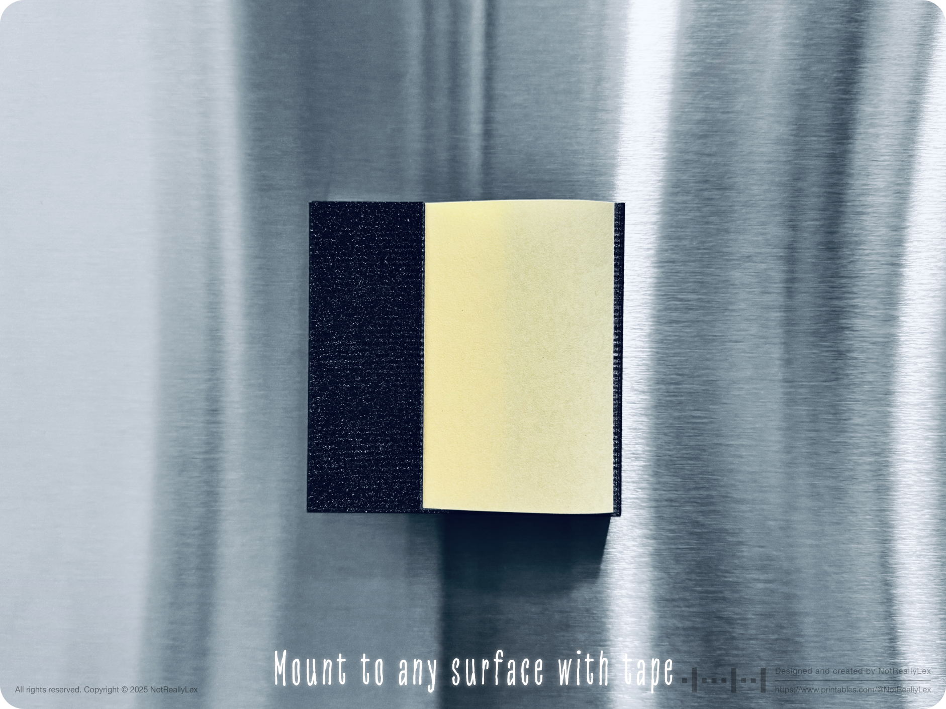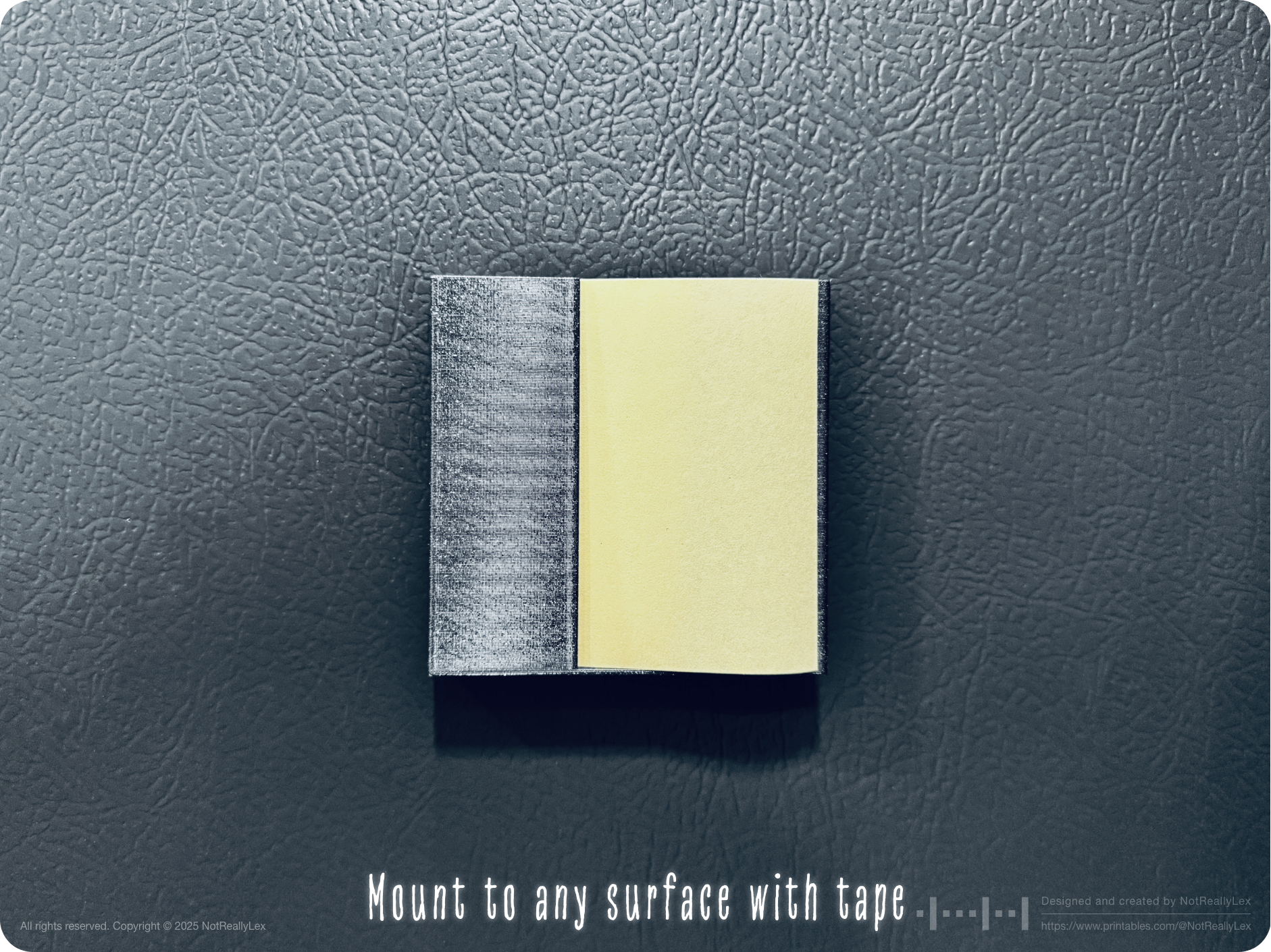 So, I designed this holder to move my sticky notes off the counter and onto the side of my fridge. It mounts to any surface with a double-sided tape: fridge doors, cabinet sides, walls, desks, whiteboards, or anywhere you need quick access. The holder also lets you pull a single note with one hand, no need to hold the stack down while peeling one off.